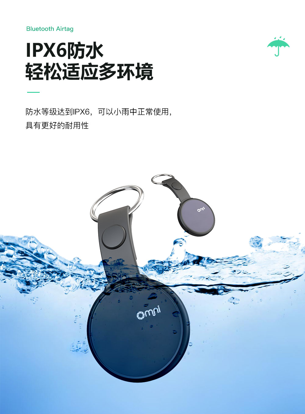 防水功能:歐米藍牙物品定位器防水等級達到IPX6防水,可以小雨中正常使用,具有更好的耐用性。